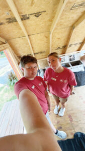 - Parker Burris, left, and Olivia Hawk work at the Little Farmers Exhibit June 17, 2025, at the Ohio State Fair. (Photo provided by Parker Burris)