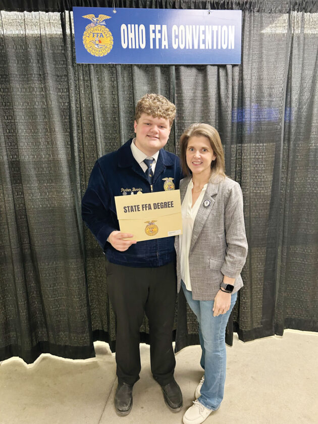 - Parker Burris poses for a photo with his mom Malisa Whiteley after earning his Ohio FFA State Degree at the 2025 Ohio FFA State Convention May 2, 2025. (Photo provided by Parker Burris)