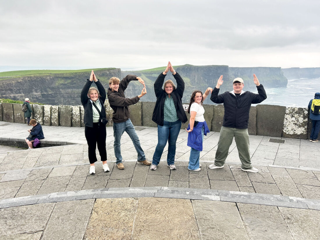 - From left, Kallie Boley, Harrison Miller, Reiley Miller, Hannah Weiker and Parker Burris at the Cliffs of Moher on June 13, 2025. (Photo provided by Parker Burris)