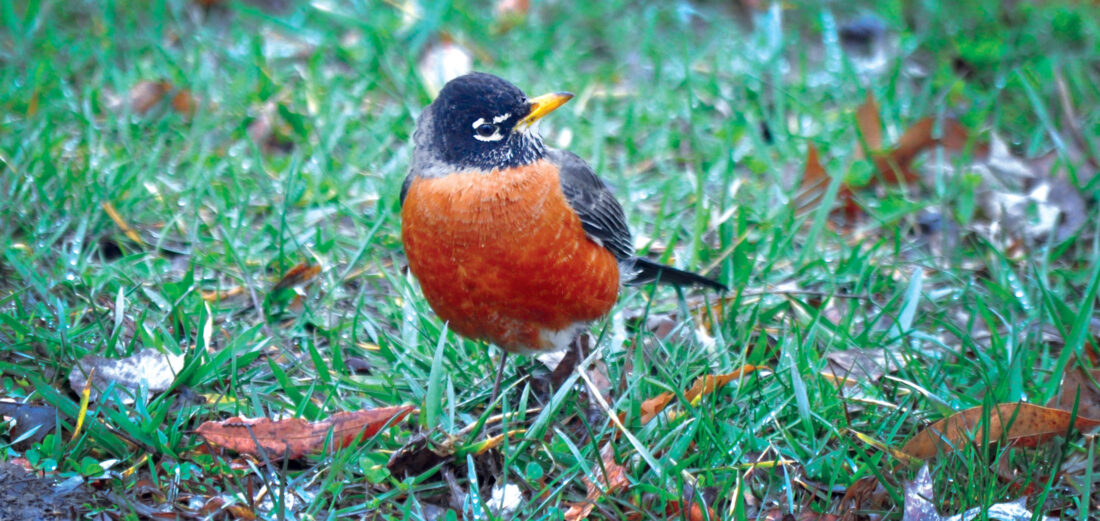 A robin looks for its next meal at Parkersburg’s City Park earlier this week. (Photo by Art Smith)