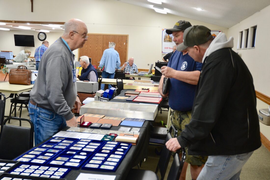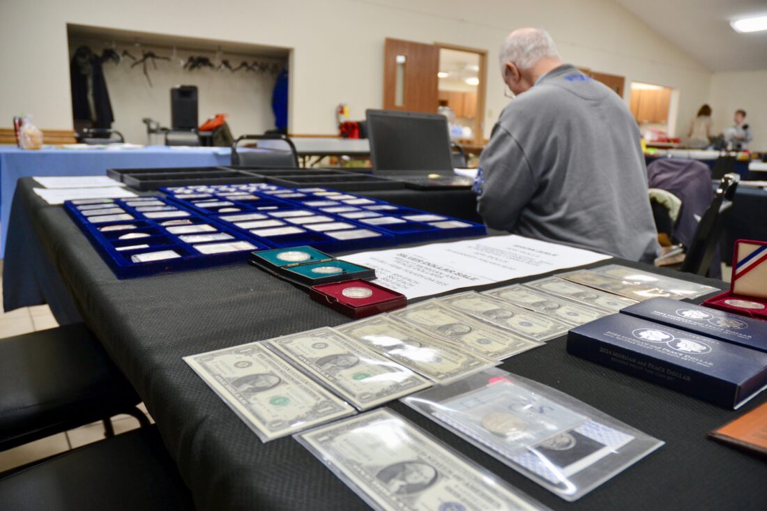 Bills, coins and more were on display Saturday at the Marietta Knights of Columbus during the Parkersburg Coin Club’s coin show. (Photo by Douglass Huxley)