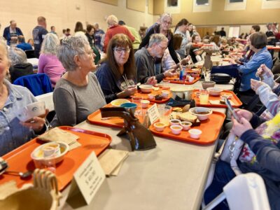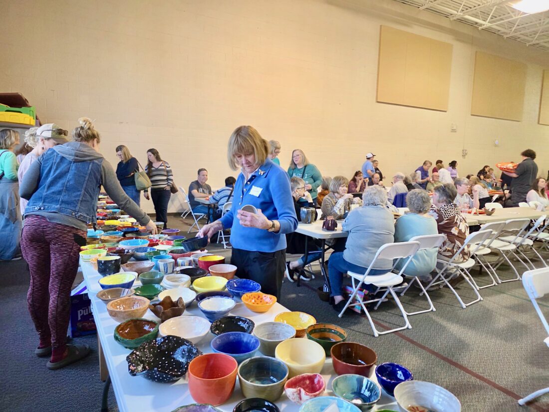 Attendees receive a handmade bowl and a serving of soup at the luncheon. Bowls are created and donated by area students and local artists. This year, contributions came from Marietta High School, Frontier High School, Parkersburg High School and the Clay Co-Op at the Parkersburg Art Center. Additional bowls were donated by community members and artists, including Margaret Lazer and students from Ely Chapman, despite kiln issues that limited production.