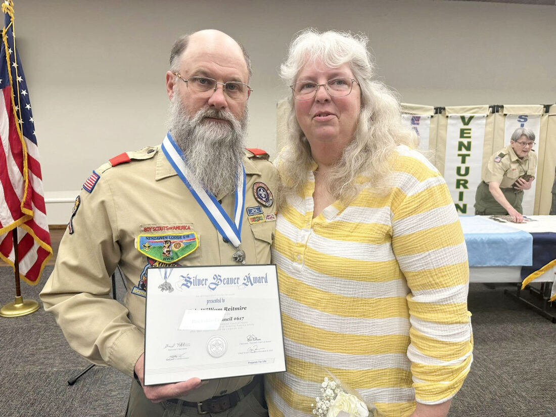 From left, Eric and Jenni Reitmire. Eric received a Silver Beaver Award on Saturday from the Buckskin Council. (Photo Provided)
