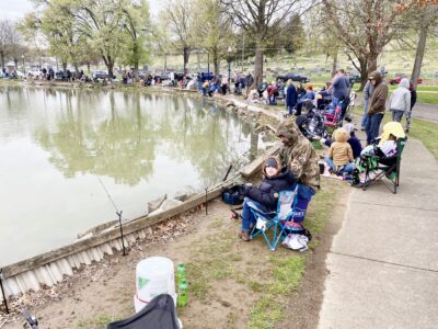 Participants at the Parkersburg Fishing Derby in April 2025. The annual derby will not be held this year because of the restoration at the City Park pond, but will return in 2027, organizers said. (File Photo)