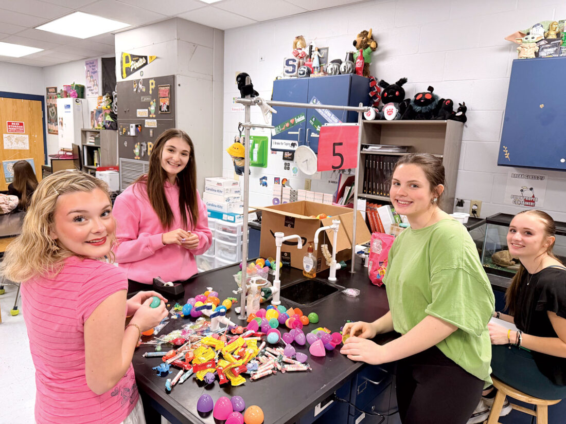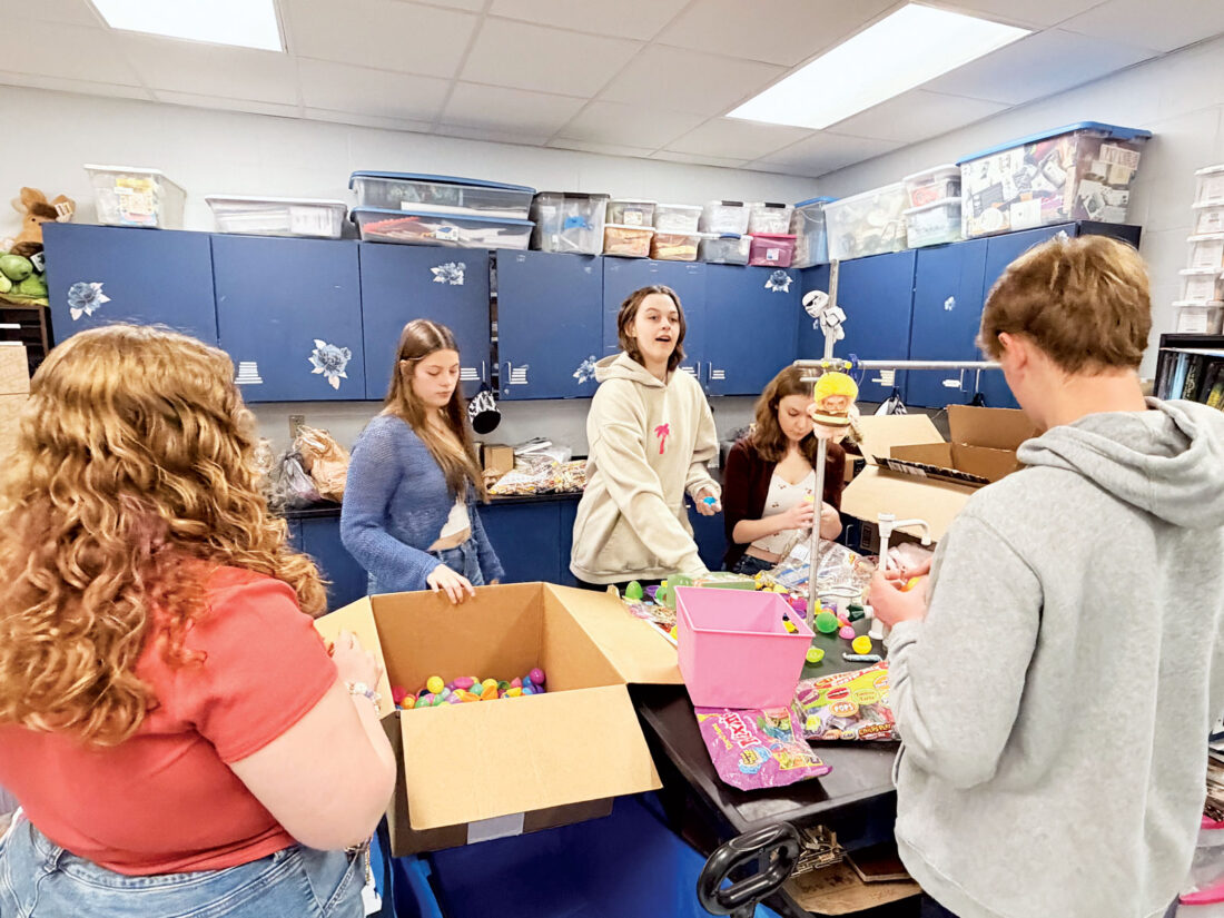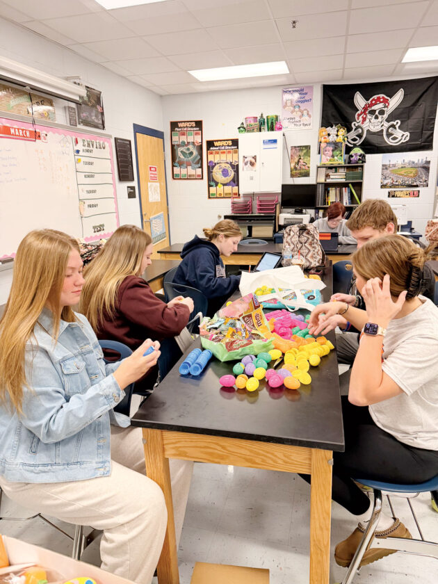 Parkersburg South High School Student Council members stuff plastic eggs with candy for the annual Spring Celebration and Easter egg hunt scheduled for 5 p.m. Tuesday on the front lawn of the school. (Photo Provided)