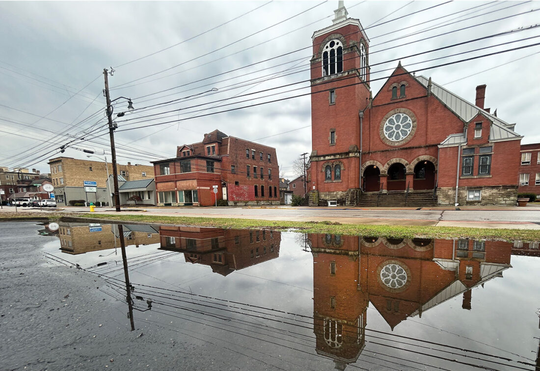 St. Paul’s United Methodist Church reflects in a puddle along Market Street Thursday morning following heavy over night rains. If you have a recent photo that showcases the beauty of the Mid-Ohio Valley, submit it to Art Smith at asmith@newsandsentinel.com for possible inclusion on this page. See more photos at instagram.com/parkersburg.news.and.sentinel. (Photo by Art Smith)