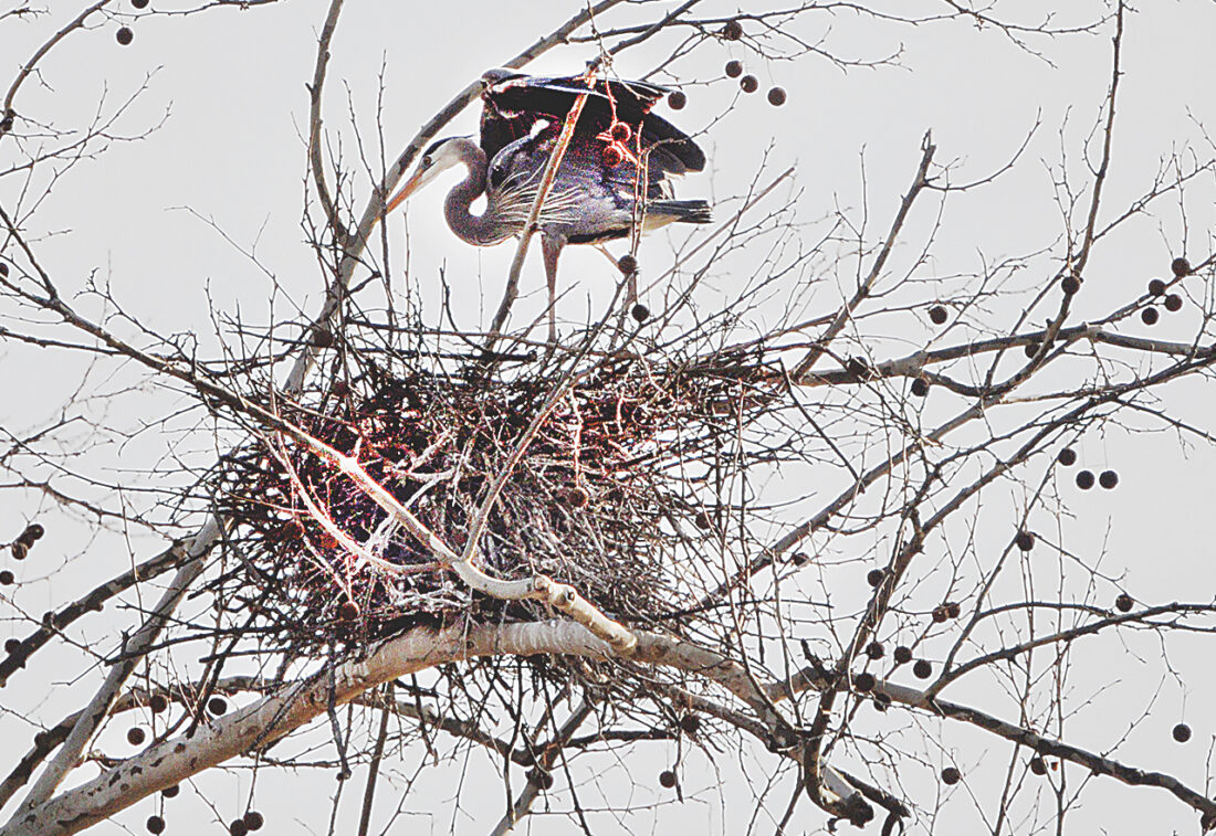 A great blue heron settles onto its nest high in a tree along the Ohio River near Belpre. Several herons have nests in the same tree. If you have a recent photo that showcases the beauty of the Mid-Ohio Valley, submit it to Art Smith at asmith@newsandsentinel.com for possible inclusion on this page. See more photos at instagram.com/parkersburg.news.and.sentinel. (Photo by Art Smith)