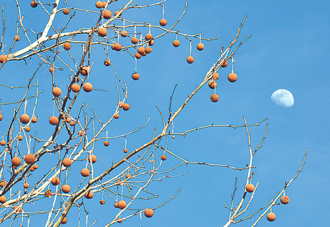 The moon floats in a late afternoon sky near a sycamore tree at the Ohio River Islands Visitor Center near Williamstown recently. If you have a recent photo that showcases the beauty of the Mid-Ohio Valley, submit it to Art Smith at asmith@newsandsentinel.com for possible inclusion on this page. See more photos at instagram.com/parkersburg.news.and.sentinel. (Photo by Art Smith)