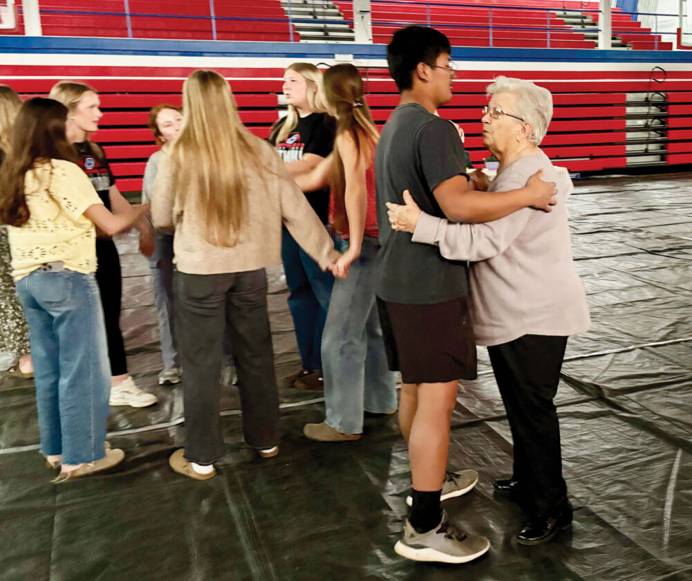 - Students and senior guests take to the dance floor in the Fort Frye High School gym Friday during the Senior Citizen Prom organized by the school’s Students Solving Problems club. (Photo Provided)
