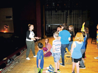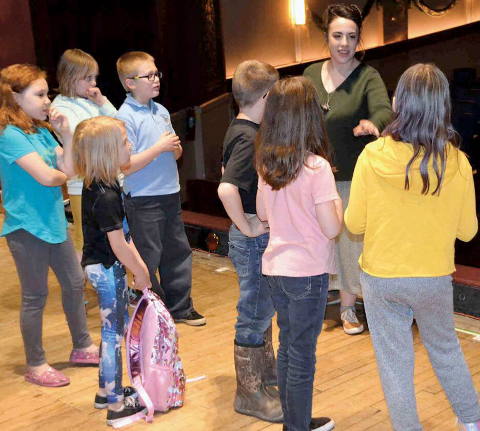 Alicia Batterson of the Missoula Children’s Theatre in 2019 works with students at the Smoot Theatre in Parkersburg on the production of “The Pied Piper.” This year’s show is “The Secret Garden.” (File Photo)