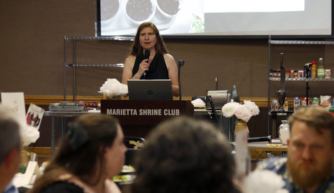 - GoPacks Executive Director Heather Warner welcomes attendees to the GoPacks annual Top Chef Challenge Friday evening. (Photo by Gwen Sour)