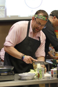 - Chris Fennell chops broccoli while participating in the Top Chef Challenge hosted by GoPacks Friday evening. (Photo by Gwen Sour)