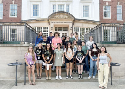 Members of the 2025 Summer Law and Trial Institute pose for a photo on the steps of the Patton College of Education at Ohio University. (Photo provided)