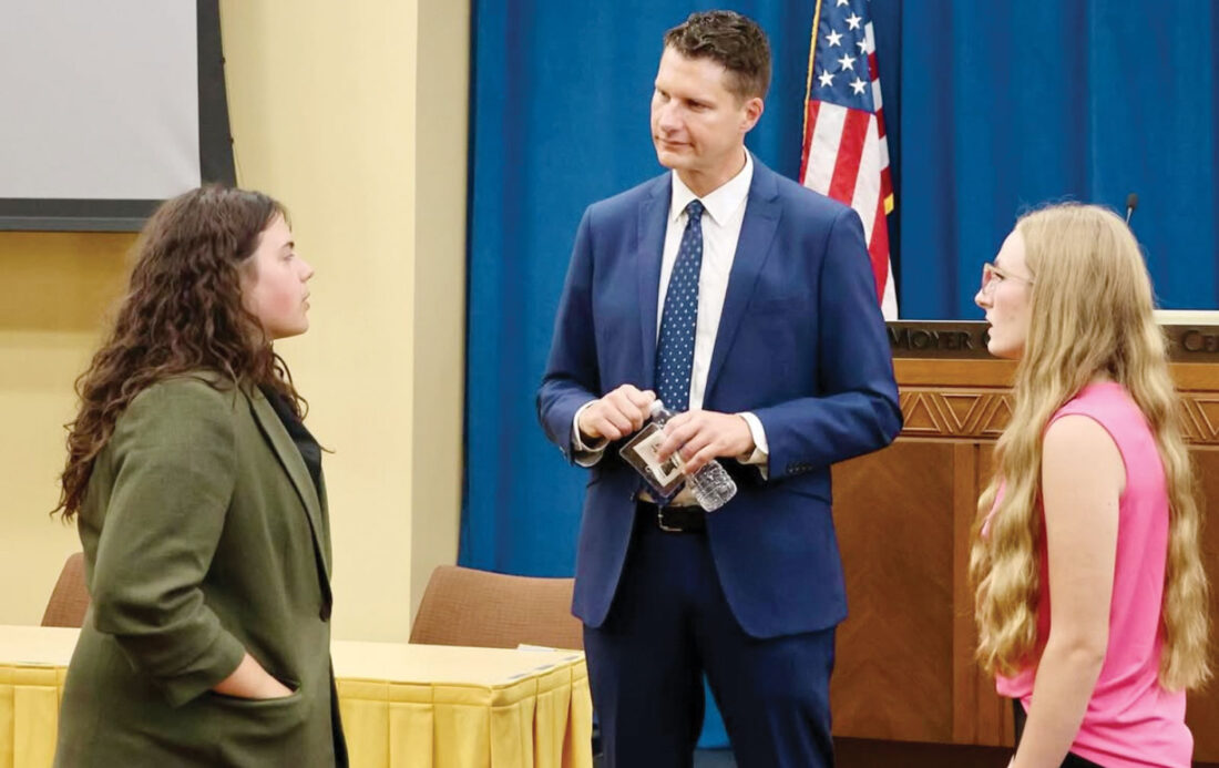 - Payton Tyler, left, and Summer Law and Trial Institute organizer Larry Hayman smile for a photo in 2025. (Photo provided)