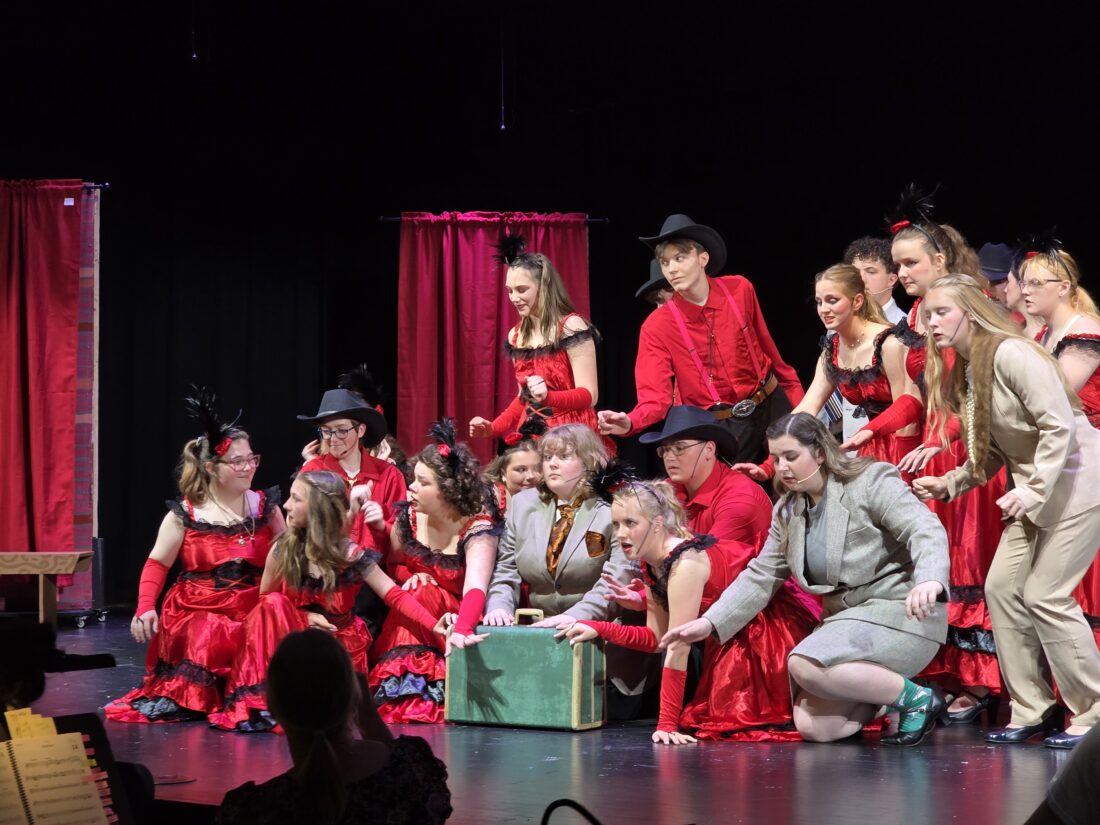 - The cast of Warren High School’s production of “Curtains! School Edition” rushes to hit the final pose for the end of Act 1. (Photo by Gwen Sour)