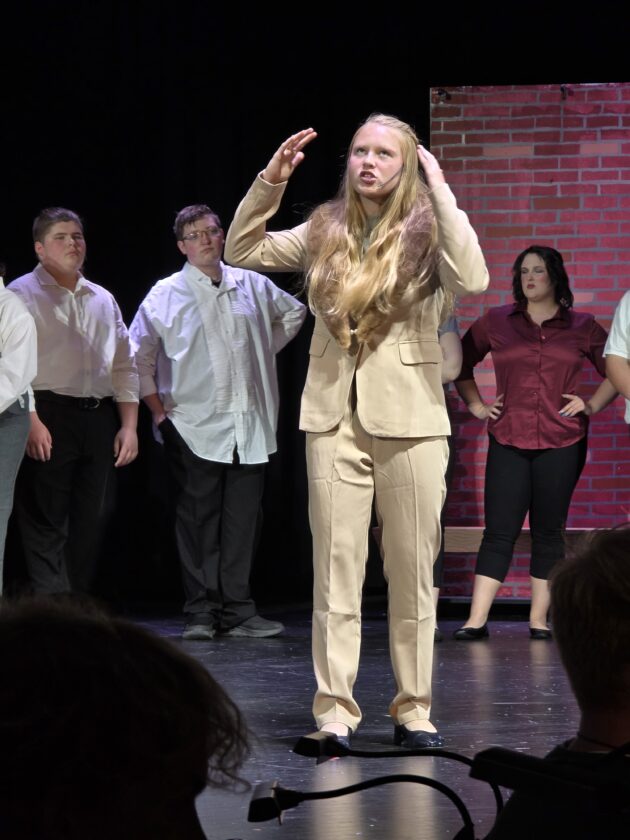 - Hollyn Reed performs a monologue during a rehearsal Tuesday evening for “Curtains! School Edition” at Warren High School. (Photo by Gwen Sour)