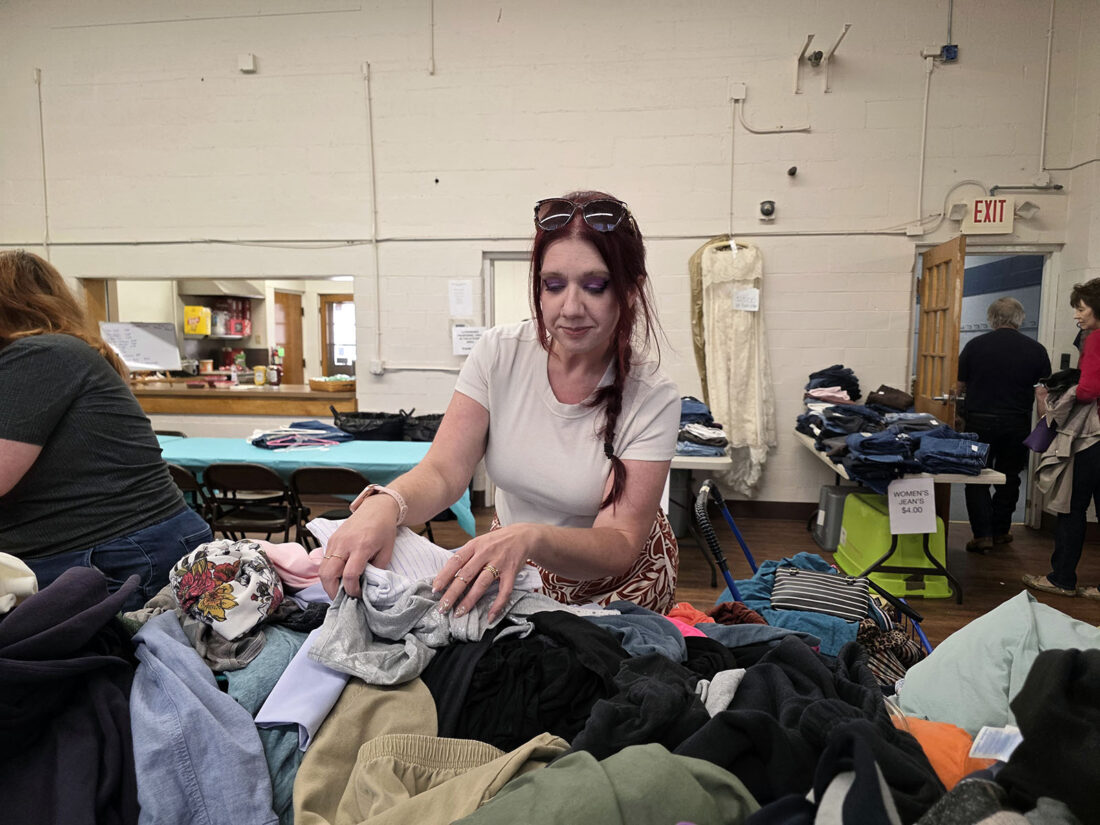 Lindsey Abrams, a Norfolk, Va. resident visiting her sister from out of town, peruses through a pile of sweaters at the Zonta Club’s Unique Boutique Friday afternoon. Photo by Gwen Sour