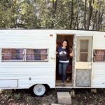 She found the camper in the Bulletin Board (a local buy-sell-trade publication) and bought it for $200, using the rest of her funds to purchase paint, flooring, fabric, and decor for her renovations. Her dad Larry helped by buying the wood and rubber roll for the roof.