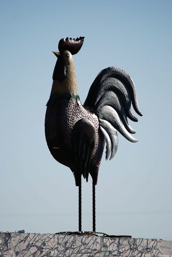Photo by Art Smith A large metal rooster beckons travelers along Ohio 32 near Mount Orab.