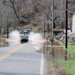- Photo by Evan Bevins A truck drives through water across Old St. Marys Pike near Newbanks Road just outside Parkersburg Wednesday afternoon.