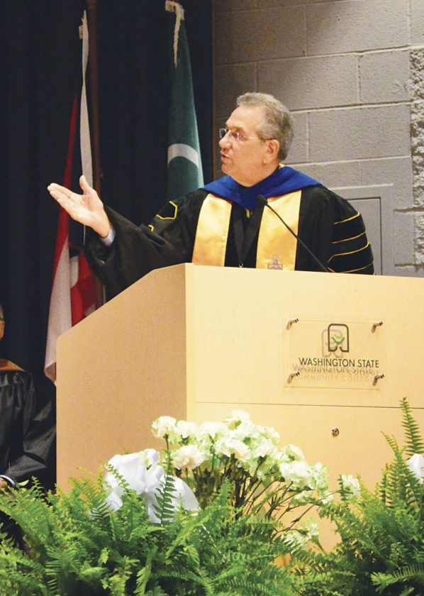 - Photo by Doug Loyer Washington State Community College President Bradley Ebersole congratulates the graduating class of 2017.