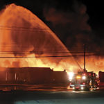 PARKERSBURG — Smoke is expected to continue to billow for several days from the former shovel plant in south Parkersburg that caught fire early Saturday morning. Here is a glimpse at the scene in the early hours of the blaze.