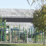 - The playground at Greenmont School sits a short distance from the giant metal warehouse buildings.