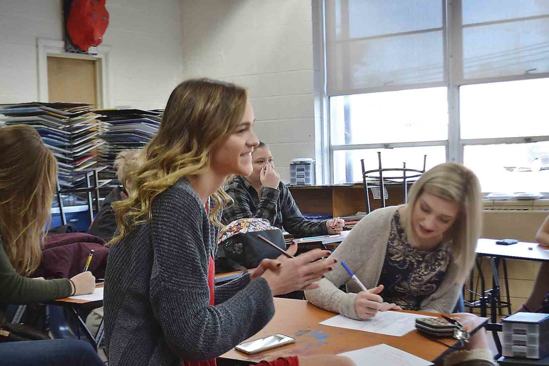 Photo by Michael Kelly Students in the junior class of Kathy Allen-Bidwell discuss their reactions to a showing of “Screenagers: Growing up in the Digital Age,” shown at Fort Frye High School in Beverly Thursday morning.