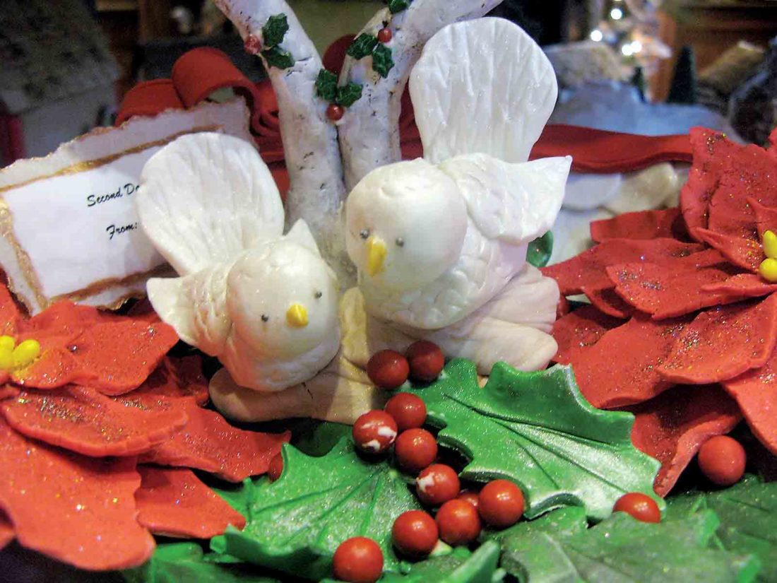 - Two doves are nesting on a poinsettia in an entry in the 2017 Gingerbread Festival at the Blennerhassett Hotel. Everything is edible. (Photo by Jess Mancini)