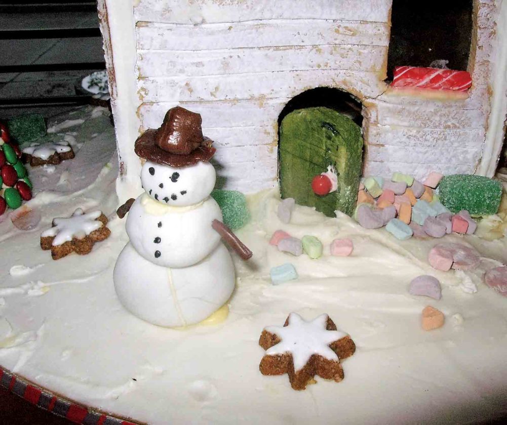 - A snowman in the front of a gingerbread house entered in the 2017 Gingerbread Festival at the Blennerhassett Hotel. Proceeds of the event will benefit Habitat for Humanity. (Photo by Jess Mancini)