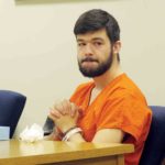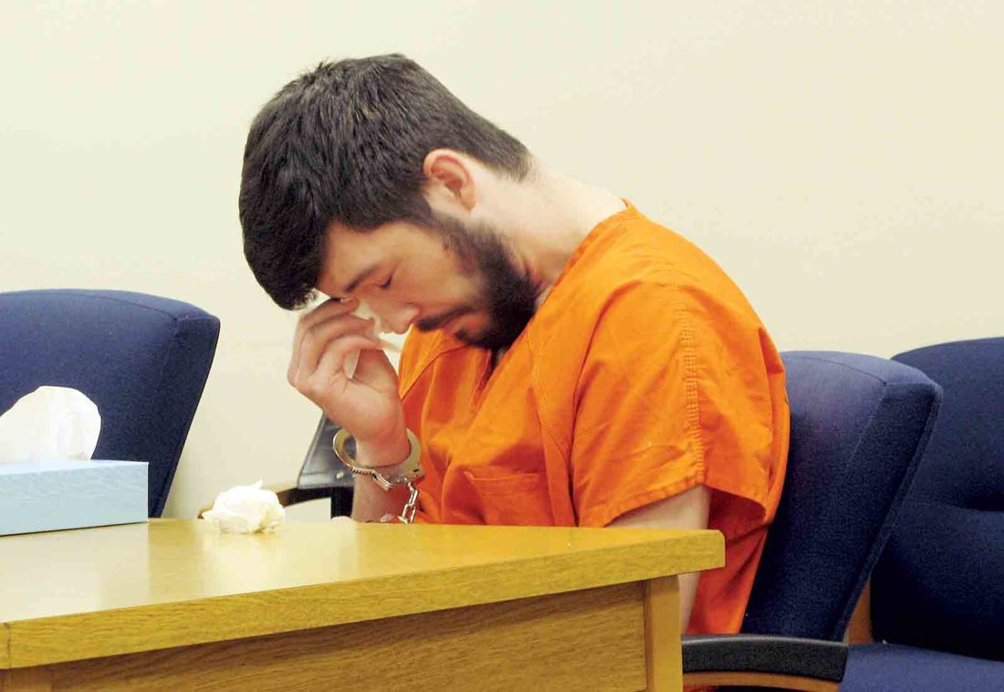 A shackled Trent Stanley wipes his eyes after Wood County Circuit Court Judge Jason Wharton pronounced his sentence of three to 15 years in prison Monday. (Photo by Evan Bevins)