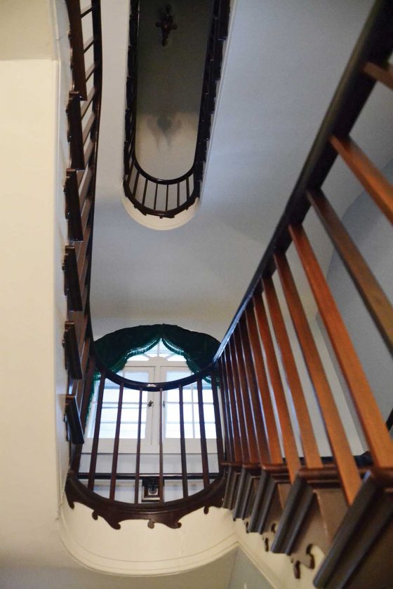 Photo by Michael Kelly The staircase of the entry in Larchmont House exhibits the precision, craftsmanship and elegance seen throughout the house.