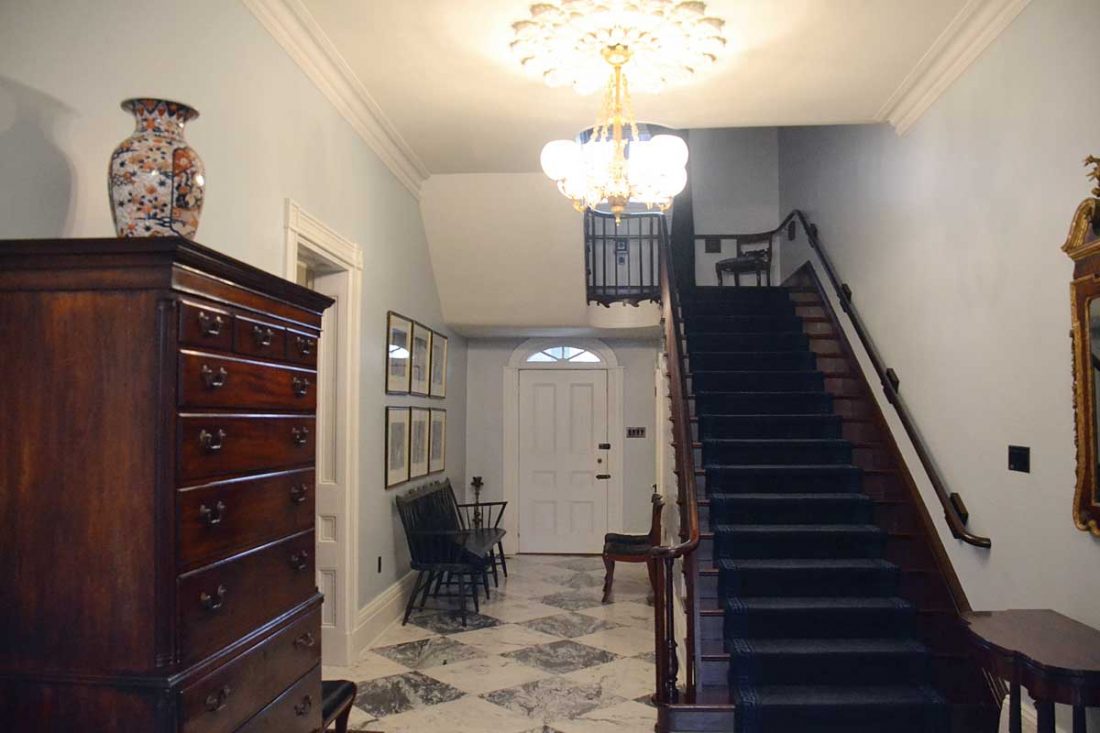 Photo by Michael Kelly The entry hall in Larchmont House is paved with marble tiles, ordered by owners David Dernberger and Geoffrey Coward after seeing the floor treatment of a similar house in Savannah, Ga.