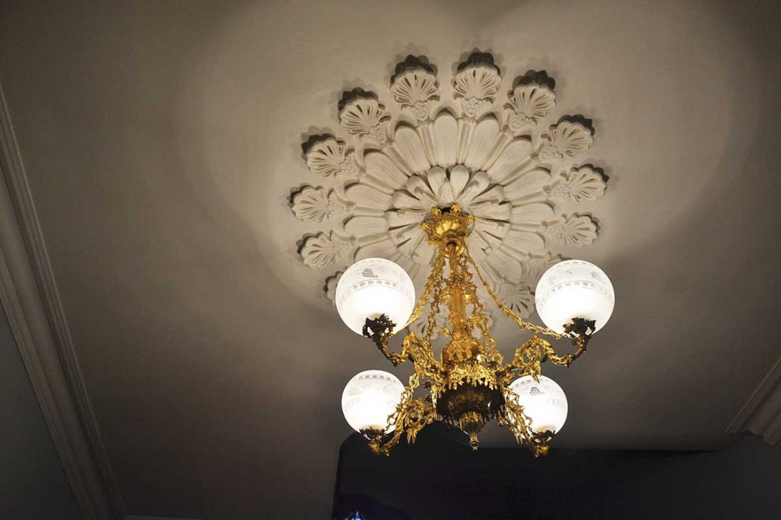 - Photo by Michael Kelly Lighting fixtures on the main floor of Larchmont House were acquired from various parts of the country and are restored period pieces.