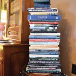 - Photo by Michael Kelly Books stacked in the living area of Larchmont House were used as references by David Dernberger and Geoffrey Coward during the long restoration and repair efforts they put into the house.