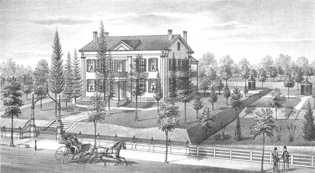 Photo courtesy of Marietta College Special Collections A drawing of Larchmont House, somewhat stylized, was published in a local atlas in 1875.