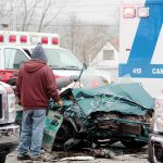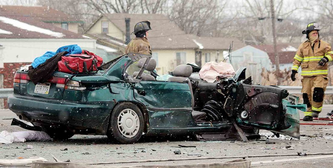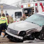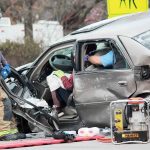 Photo by Michael Erb Emergency crews had to free several people trapped in vehicles Thursday after a two-vehicle collision at the intersection of Camden Avenue and Elder Street.