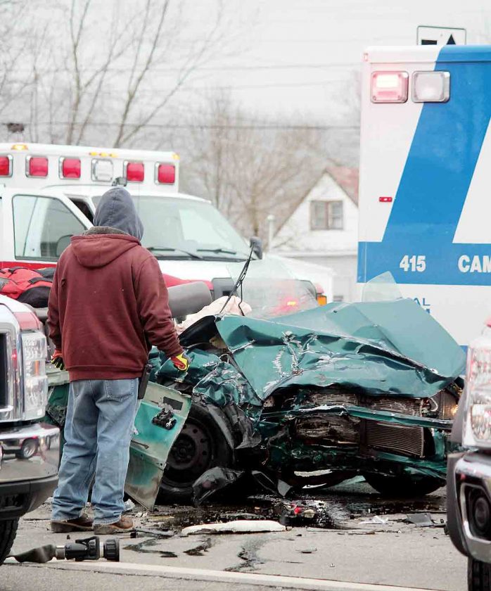 - Photo by Michael Erb Emergency crews had to free several people trapped in vehicles Thursday after a two-vehicle collision at the intersection of Camden Avenue and Elder Street.