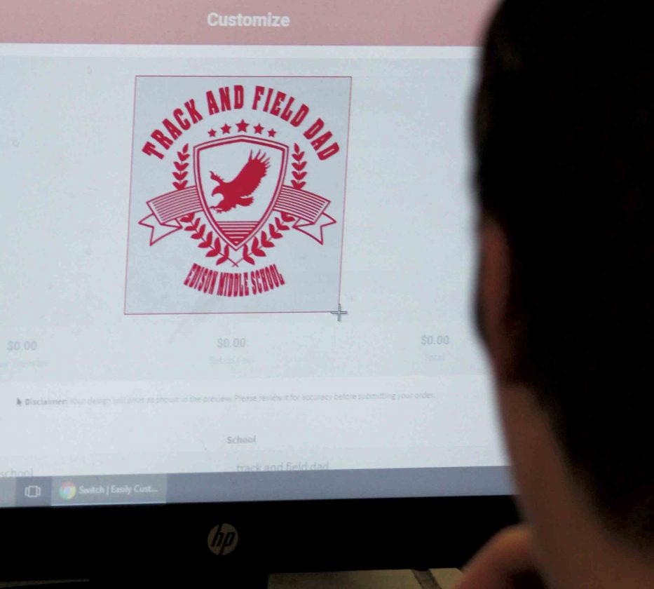 The project began about three months ago, and class has sold 65 shirts. The initial run was so successful, administrators challenged the students to design and create logos for track apparel, such as hoodies and sweat pants. The students have so far sold more than 250 pieces of track apparel and continue to design and sell more.