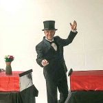 - Photo courtesy of David Pickering Dr. David Pickering practices his performance with magic and the aid of daughter Ally, left, and her friend Courtney Griffith.
