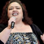 Heather Hepburn, a second session panelist, sings before the start of the afternoon session of The Climb Symposium at West Virginia University at Parkersburg. (Photo by Jeff Baughan)