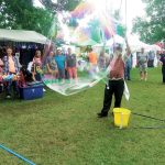 Photo by Madeline Scarborough Professor Bubblemaker shows off his bubble blowing skills to those attending the Mid-Ohio Valley Multicultural Festival on Saturday.