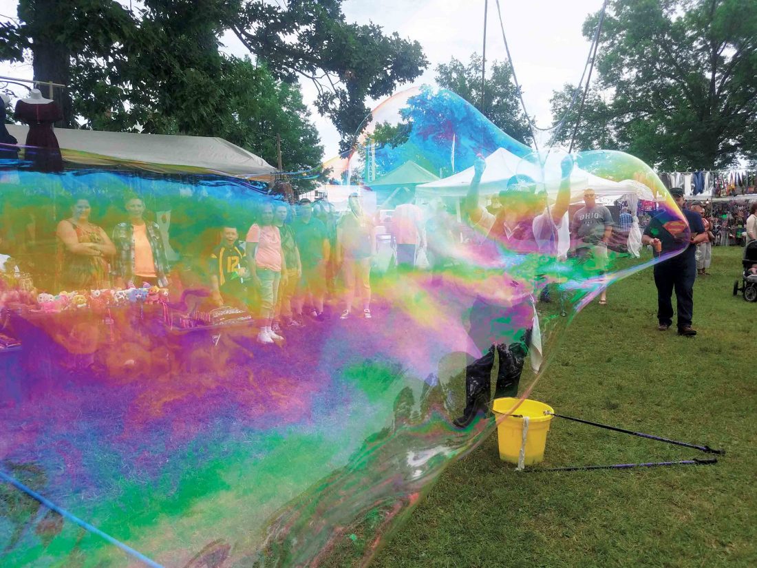 - Photo by Madeline Scarborough Professor Bubblemaker shows off his bubble blowing skills to those attending the Mid-Ohio Valley Multicultural Festival on Saturday.