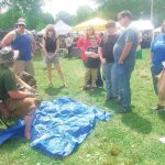 Photo by Madeline Scarborough People gathered to learn about how to make arrowheads from Jason Dreveenak, president of the North American Bushcraft School.