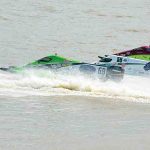 - The final powerboat race held during the 19th annual Riverfront Roar in Marietta saw Michael “Hurricane” Floyd of Rincon, Ga., in the #75 boat, win on Sunday. (Photo by Brett Dunlap)