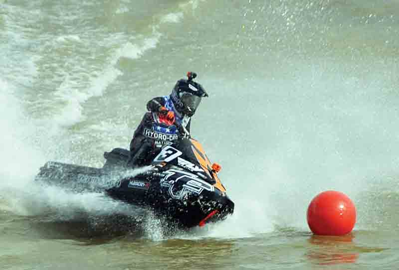 - The final Hydro-Cross race was held Sunday at the 19th annual Riverfront Roar in Marietta. The event is described as “motorcross on jet-skis” as riders had to skillfully navigate a course on the Ohio River. (Photo by Brett Dunlap)