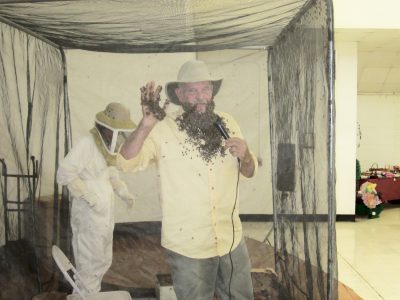 Following their natural instincts, the honeybees gathered around the queen on Conlon’s chin to create the bee beard as he presented information and history about the honeybee to the audience.