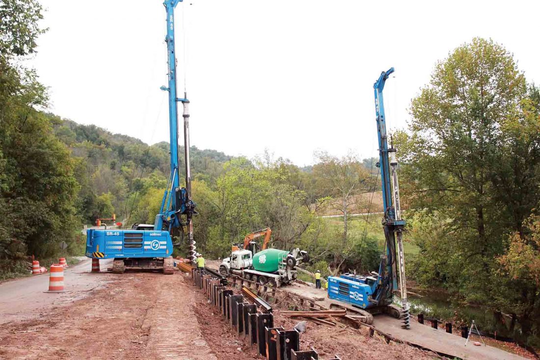 “This is what’s considered cast-in-place piles,” explained county field inspector Doug Parks. “There are 104 piles, then we’ll drill in between them and add plug piles. It will be one solid wall up through here, and it will be a two-lane road again after we’re done.”