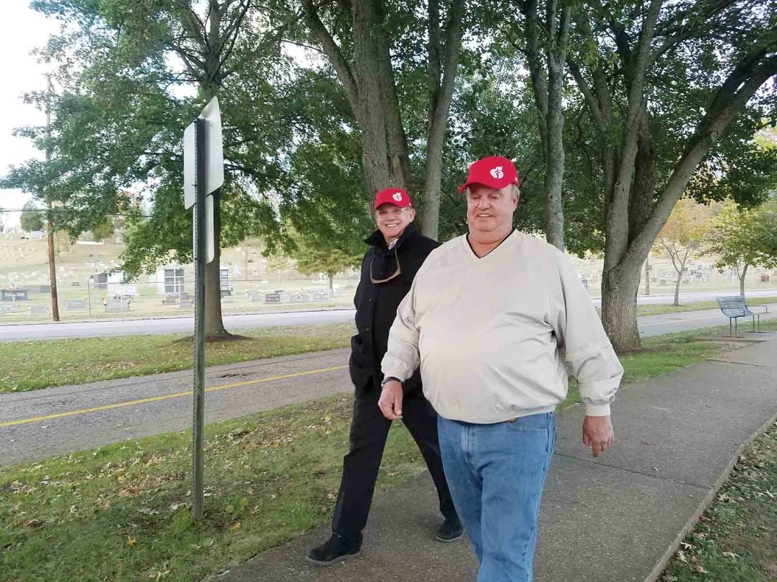 - Survivors lead the walk wearing red (heart disease) and white (stroke) hats. (Photo by Madeline Scarborough)