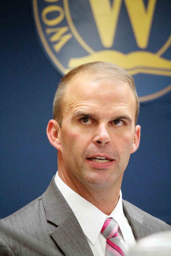 Wood County Schools Superintendent Will Hosaflook gives an update during Tuesday’s Wood County Board of Education meeting. Hosaflook said work on the district’s new 10-year facilities plan continues, and a set of goals for the plan will be brought to the board next month for approval. (Photo by Michael Erb)